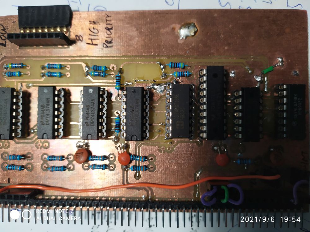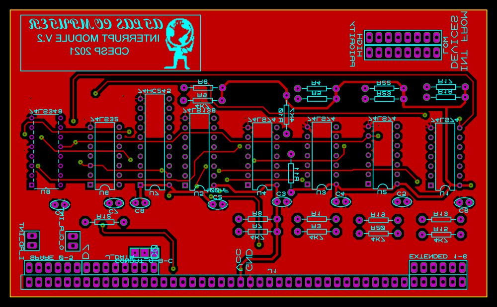 This Z80 interrupt module is being used to support interrupt handling on devices. For example i am using a 555 circuit to make a 20ms pulse that are fed into this module. The module signals an interrupt to the cpu via a Flip-Flop. When the cpu handles this interrupts, then it should clear this flip-flop by using an Out command.